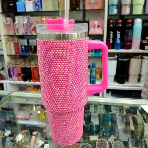 Pink Rhinestone 40oz Insulated Tumbler with Handle